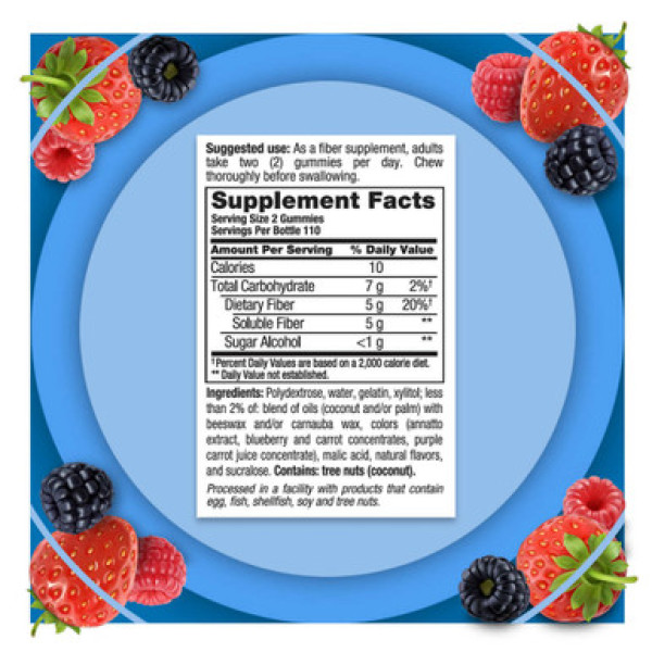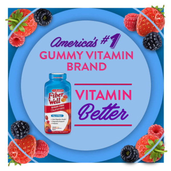 Получите свое питание от ведущего бренда жевательных витаминов в Америке! Каждая порция vitafusion Fiber Well помогает поддерживать и улучшать пищеварительное здоровье благодаря 5 граммам пребиотической клетчатки.* Насладитесь вкусной бессахарной конфеткой с натуральными ароматами персика, клубники и ежевики!