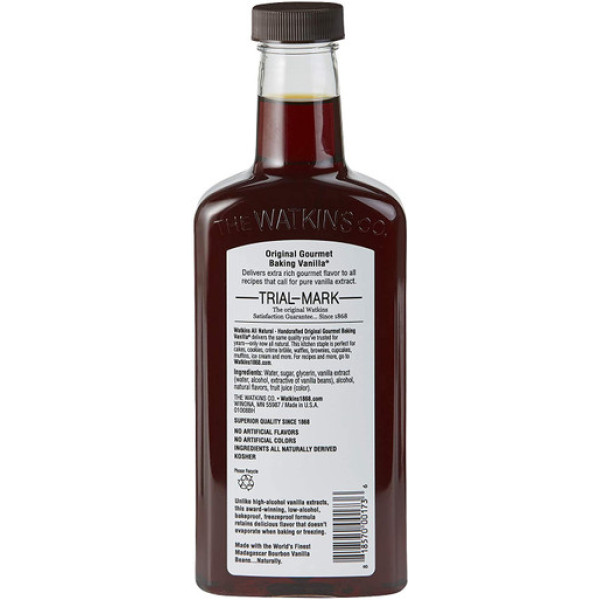 Изготовленный из натурального экстракта ванили и других натуральных компонентов, диетический продукт Watkins All Natural Original Gourmet Baking Vanilla идеально подходит для приготовления выпечки. Благодаря своей концентрированной формуле, эта не содержащая ГМО и глютена ванильная смесь прекрасно сохраняет свои качества при замораживании. Кроме того, она не содержит искусственных красителей и ароматизаторов. Данный продукт сертифицирован как кашрутный.
