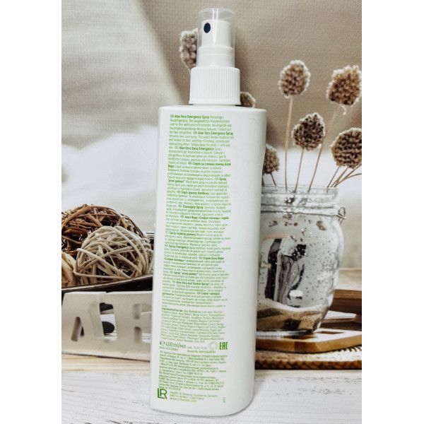 Спрей «Швидка допомога» від німецького бренду аптечної косметики LR Health & Beauty – універсальний засіб для всього тіла. Унікальна рецептура на 83% складається з алое вера, а також містить прополіс та 12 лікувальних рослинних екстрактів. Багатофункціональність цього продукту вражає! Ви можете використовувати його для швидкого зволоження епідермісу, зняття роздратування, обробки опіків та пошкоджень. Aloe Vera Instant Emergency Spray також допомагає відновити сухе волосся, зміцнити коріння, позбутися лупи та сверблячки. Так як цей спрей має властивості природного антибіотика, його можна використовувати навіть при застудних захворюваннях та запалення горла. Застосовуйте його, коли шкіра потребує термінової першої допомоги.