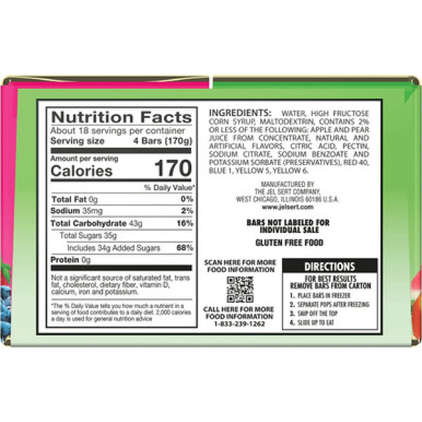 Дарим вам возможность освежиться с Wyler's Authentic Italian Ices Freezer Pops! Этот набор включает 70 попсиклов разных вкусов: Оригинал и Ягоды, идеально подходящих для любого случая. Сделанные из высококачественных ингредиентов, эти попсиклы не содержат кофеина, жира, глютена и молока, а также сертифицированы как Кошерные. Они также идеально подходят для детей и малышей! Порция составляет одну палочку, содержащую 170 калорий. Эти десерты идеально подходят для жарких летних дней, вечеринок или просто в качестве сладкой закуски. Получите свои сейчас и насладитесь вкусом настоящих итальянских льдов Wyler's!