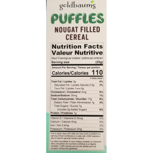 Goldbaums Gluten Free Nougat Filled Cereal - это злаковый продукт, обогащенный ароматным нугой. Он является отличным источником клетчатки и способствует быстрому насыщению. Завтрак с этим злаковым продуктом поможет вам получить энергию на целый день. Отличный выбор для школы или работы, эти хрустящие хлопья станут идеальным вариантом для вкусного перекуса в середине дня или ароматного угощения перед сном.
