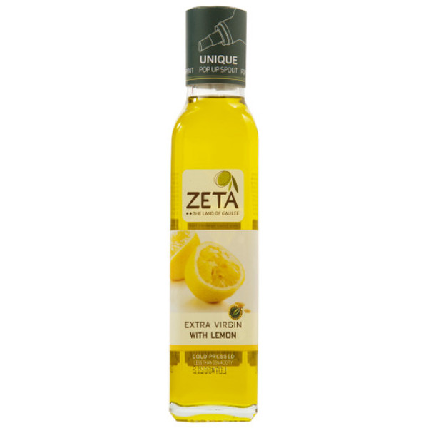 Zeta Extra Virgin Olive Oil Lemon Infused Flavored (Зета оливковое масло Extra Virgin с натуральным лимонным ароматом) – холоднопрессованное оливковое масло Extra Virgin высочайшего качества, рекомендуется к употреблению с рыбой и морепродуктами, твердыми сырами, козьим сыром, для приправления блюд и салатов.