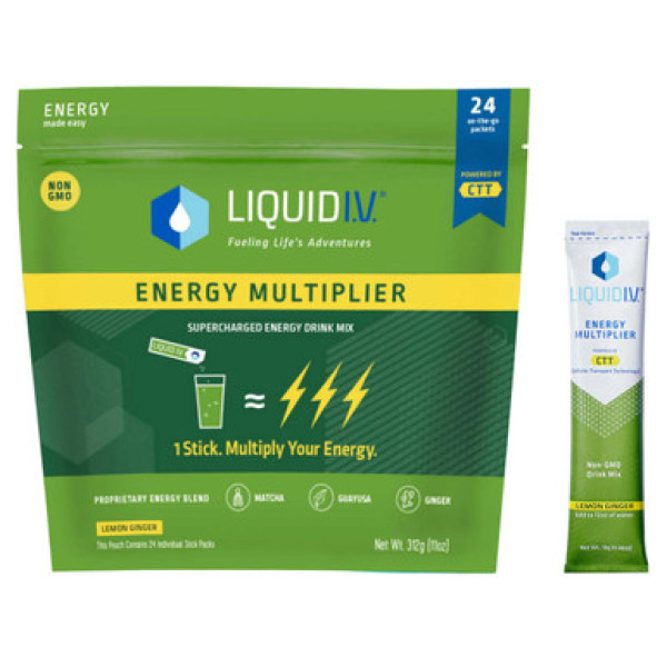 Liquid I.V. Energy Multiplier - это негенетически модифицированный энергетический коктейль, который можно смешать с 12 унциями воды. Он содержит около 100 мг мгновенно действующего натурального кофеина, что эквивалентно 1-2 чашкам кофе. Коктейль имеет приятный натуральный вкус лимона и имбиря, не содержит искусственных подсластителей, ароматизаторов, красителей, консервантов, глютена, сои или молочных продуктов. Порционный пакетик может быть удобно использован в путешествиях.
