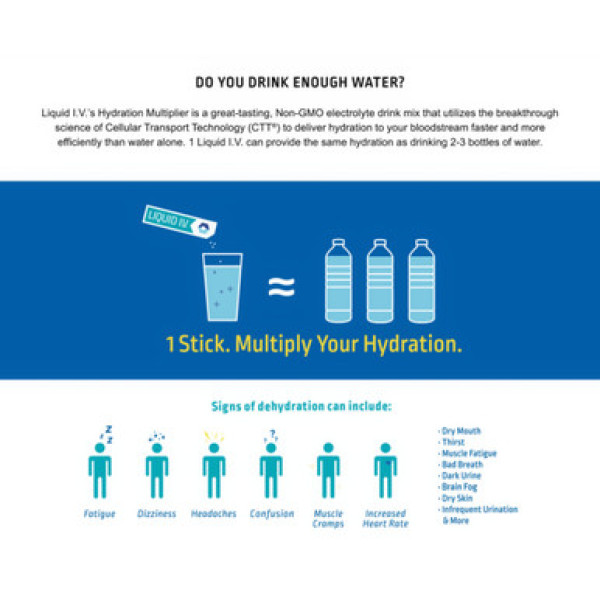 Жидкость Liquid I.V. Hydration Multiplier - это инновационный гидрационный порошок, созданный с использованием биотехнологии и содержащий мощные электролиты и витамины. Смешайте одну стик-упаковку с 16 унциями воды, и ваш организм быстро пополнит запасы влаги, витаминов и минералов.