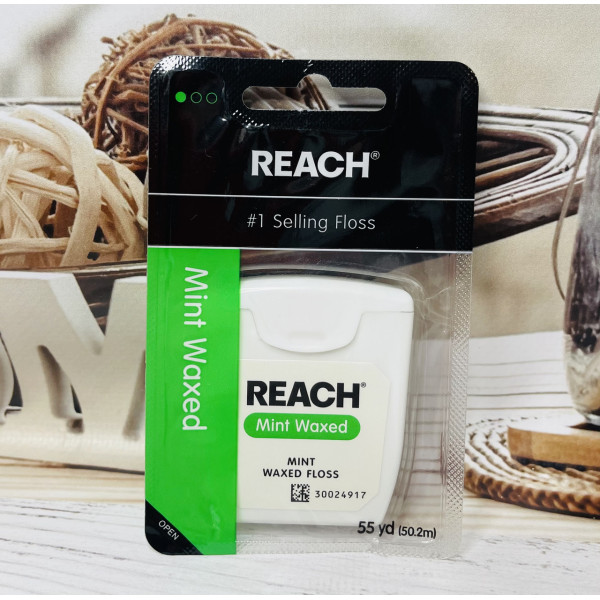 Вощена зубна нитка Reach (Річ) ефективно видаляє зубний наліт із міжзубних проміжків. Для її виготовлення використовується нейлонова нитка найвищої якості, оброблена воском, тому вона не рветься й не розтягується, легко ковзає в міжзубному просторі.
