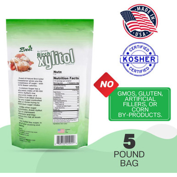 Zveet Настоящий Березовый Ксилитол, 5 фунтов.